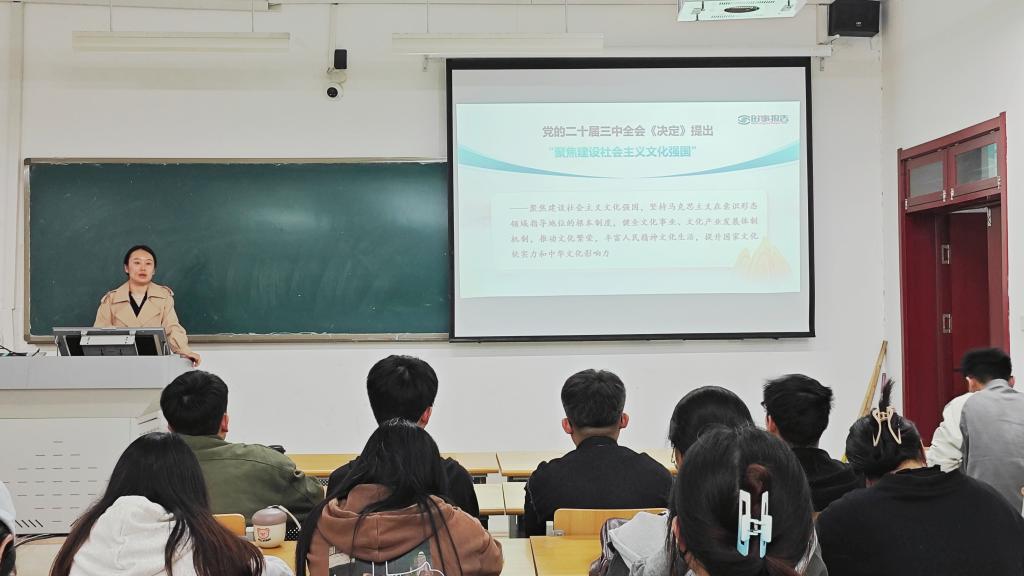 为深入贯彻党的二十届三中全会精神,落实习近平总书记对学校思政课建设的重要指示,充分发挥思政课立德树人的关键作用,4月14日,beat365唯一官方网站党委书记孙晨晨于明理楼为学院2023级学生带来了一堂深刻且富有启发性的思政课。
