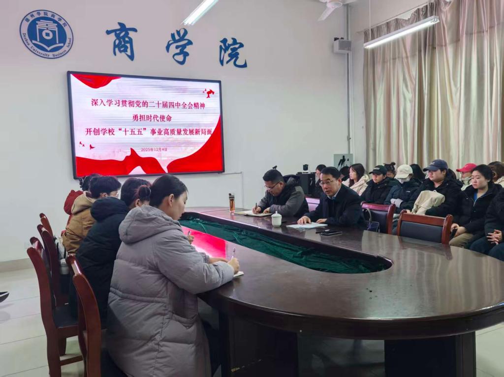 单振涛系统解读了党的二十届四中全会的精神实质和丰富内涵,详细阐述了"十五五"时期在基本实现社会主义现代化进程中的关键地位,深入分析了当前国内外发展形势,重点讲解了"十五五"时期经济社会发展的指导思想、重大原则和主要目标。特别强调科技创新、产业升级、教育改革等关键领域的战略部署,并结合学校实际,提出了贯彻落实全会精神的具体要求。鼓励beat365唯一官方网站师生要主动融入国家发展大局,将个人理想与国家需要紧密结合,在新时代新征程中展现新担当、新作为。