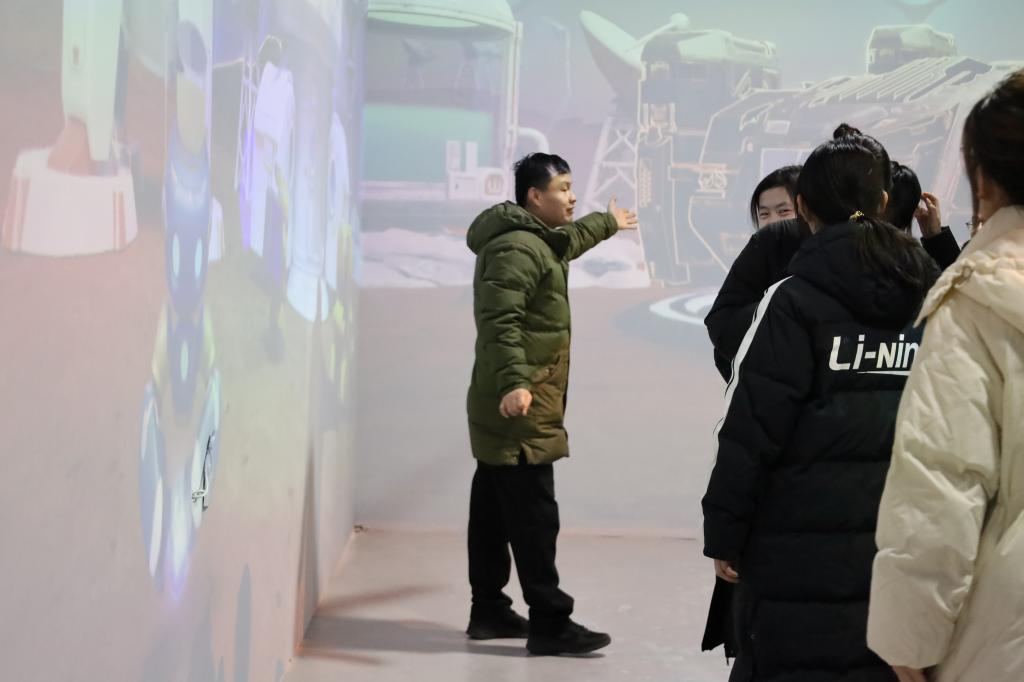 集中学习后,师生党员走进老电厂负一层能源电力实验室,触摸能源科技的变迁脉络。讲解员回溯老电厂从20世纪80年代末至今的转型之路,其机组升级、环保改造到布局“风光储一体化”的发展历程,正是我国能源工业转型的生动缩影。通过实物、照片与虚拟仿真平台操作,党员们直观了解火力发电与新能源发电原理,感受科技对能源安全的坚实支撑,实验室“能源电力红色历程”展板更彰显了党员技术骨干的攻坚担当。随后,党员分组体验元宇宙沉浸区、LBE MR体验区、火箭实验室,裸眼3D技术呈现的清洁能源图景、混合现实技术赋能教学的新思路、火箭发射模拟带来的航天科技震撼,让大家沉浸式探索创新育人路径。
