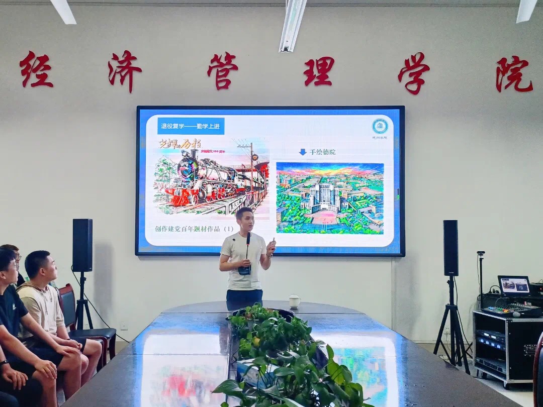 为广泛宣传学校优秀退役大学生士兵的先进事迹,引导广大青年积极响应国家号召,携笔从戎,勇担时代使命,同时帮助广大青年学生更好的理解和执行最新的征兵政策,5月25日晚7:00,经济管理学院在明理楼0359会议室开展了“热血青春献国防·军旅利剑铸忠诚”优秀退役大学生士兵事迹宣讲暨2022年征兵政策宣讲会,会议采用线上线下结合方式开展。