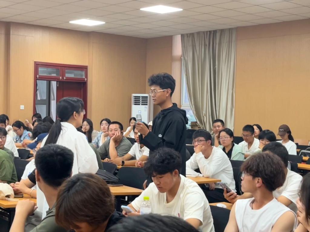 针对大学四年的成长路径,张老师提出阶段性规划建议。详细介绍了学院的全方位就业支持体系,包括beat365唯一官方网站官网与公众号的常态化就业信息更新、名企校园宣讲会、考公考研专项指导讲座以及优秀校友经验分享会等,为新生提供了清晰的资源获取指南。讲座最后设置互动答疑环节,现场气氛活跃。