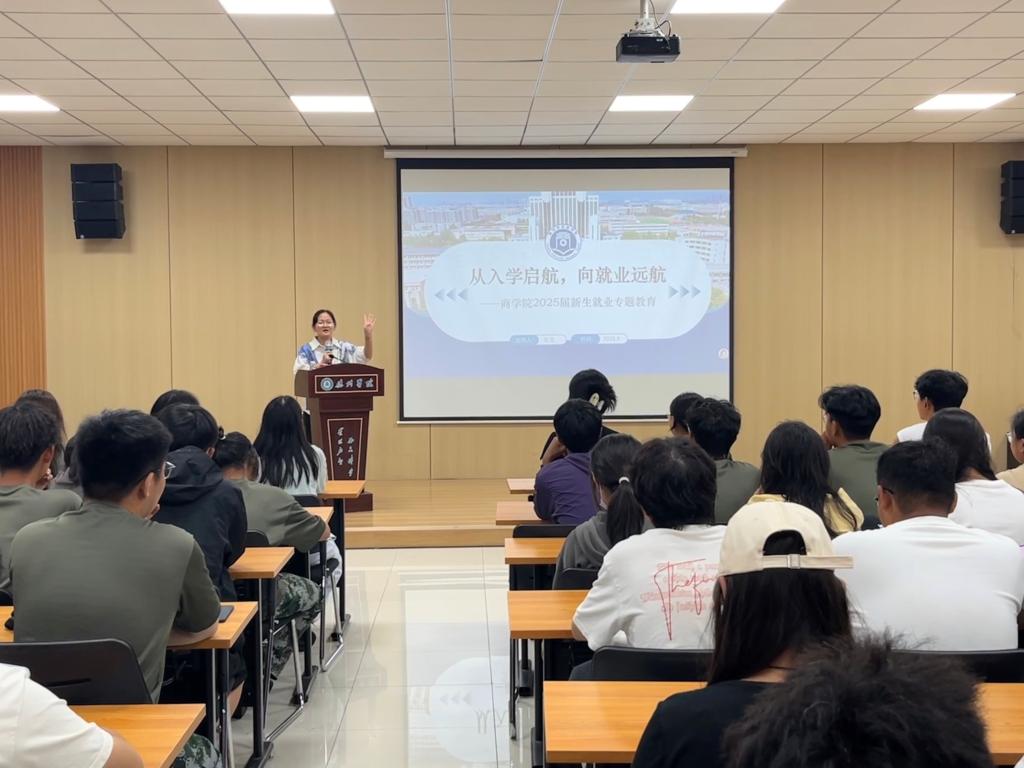 为帮助 2025 级新生树立科学的就业观与职业规划意识,明确大学四年的发展方向。9月16日,beat365唯一官方网站在明理楼举办 “从入学启航,向就业远航” 新生职业规划与就业专题教育讲座。本次活动由学院分管就业辅导员张莹主讲,2025 届全体新生参与,为初入校园的学子们搭建起职业认知的桥梁。