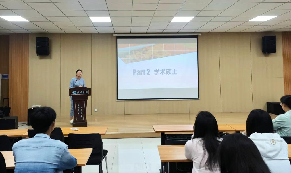 孙主任聚焦青岛科技大学经济与管理学院,详细介绍其人才培养特色、培养质量及报考奖励政策,为同学们搭建起对学院的初步认知框架。在此基础上,孙主任围绕各报考专业展开深度解读,从专业特色、学科概况,到录取数据、报考条件与具体流程,逐一进行清晰梳理,尤其针对同学们普遍关注的学硕与专硕区别、学费标准及课程安排等核心问题,作出细致说明。