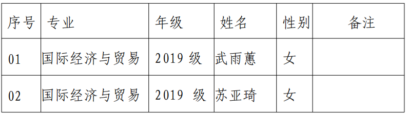 根据国家留学基金管理委员会《关于启动 2023年俄罗斯互换奖学金 (中俄政府奖学金) 遴选的通知》和学校《关于 2023年中俄政府奖学金的遴选通知》的要求,经学生自愿申请,学院审核,拟推荐2名学生为该项目候选人, 现将推荐结果公示如下,现进行公示,公示期 2023.02.07-2023.02.11 ,公示期间如有异议,请联系经济管理学院。