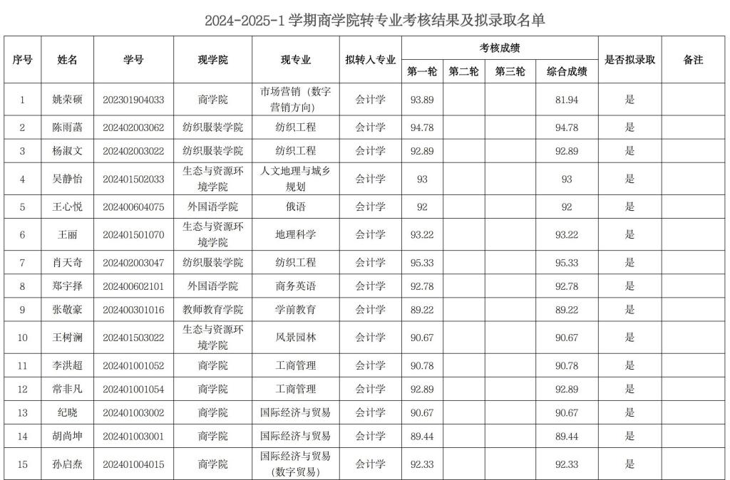 附件:2024-2025-1学期beat365唯一官方网站转专业考核结果及拟录取名单