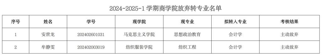 2024-2025-1学期beat365唯一官方网站放弃转专业名单