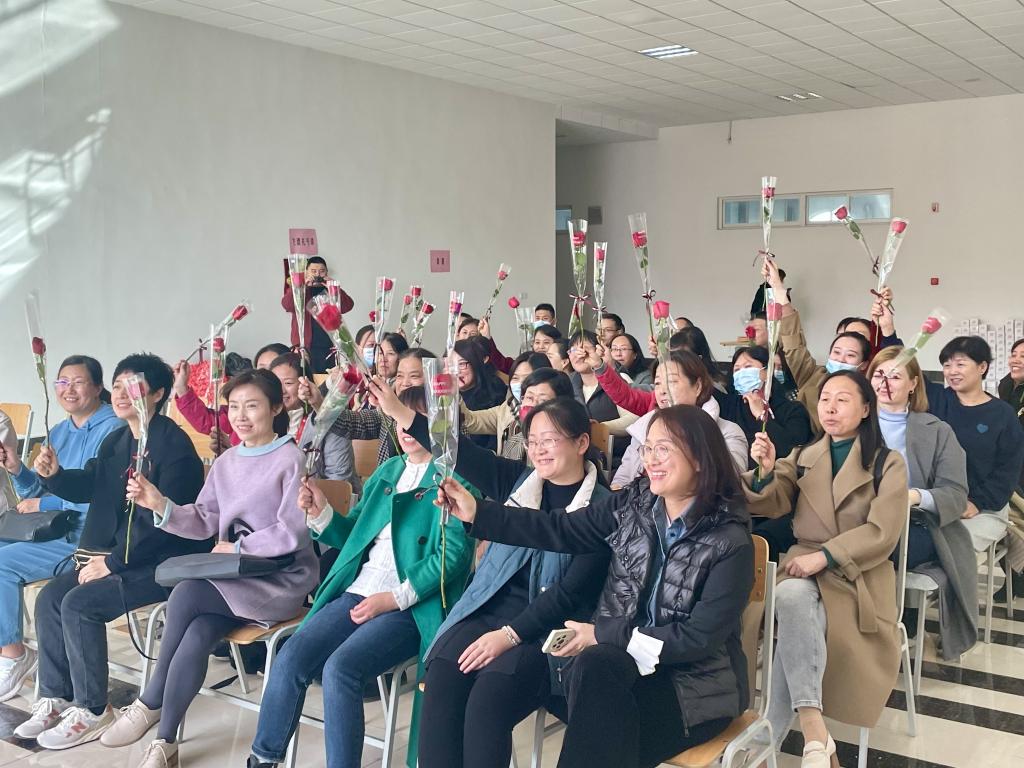 “我想对最爱的红梅老师说,很感谢您一直以来的陪伴和教导,在‘三八’妇女节来临之际,我祝您节日快乐,希望您身体健康,万事如意。”活动伊始,女教职工集中观看了学生录制的节日祝福视频,看到一张张熟悉的面孔在视频中温暖“表白”,老师们脸上流露出了感动和满足。随后,女教职工授课班级的学生代表分别为她们送上了精美的鲜花和贺卡,艳丽的玫瑰花里,蕴藏的是美好的祝愿,祝福每位女教师都能绽放出自己的光彩和力量。