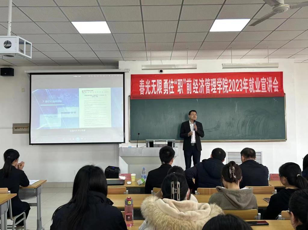 为扎实做好2023届毕业生就业工作,缓解毕业生就业压力,解决毕业生就业难题,全力以赴做好学院毕业生就业工作。3月26日上午,经济管理学院在明理楼0233教室举办“春风送暖 勇往‘职’前”就业宣讲会。