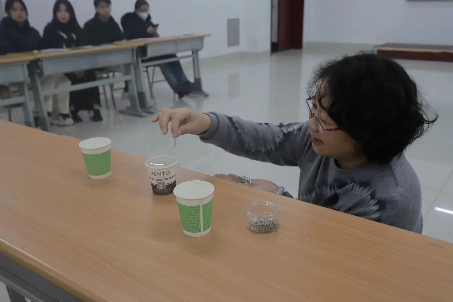 活动伊始,活动主持人向大家介绍了本次团体活动的性质、目的、过程与方法,并签订《团体合约书》。随后,通过数字倍数小游戏,帮助团体成员相互认识、拉近距离,营造安全、自由、轻松的氛围。本次团体心理工作坊活动的主要内容从给自己起一个喜欢的名字开始,依次进行自我介绍,通过名字及自我介绍引导同学们认识自我、了解自己。随后,主持人现场给同学们分享了一个小实验,将纸杯装满水到与杯面齐平,往满水的纸杯中放入曲别针,最后将一整盒曲别针全部放进了杯中,而杯中的水没有溢出来。通过这个实验,主持人告诉同学们人生的道理:人生没有不可能,不要觉得自己达不到希望的目标,只要敢去做,敢于去尝试,敢于挑战自己,挑战不可能,就没有不可能完成的事情。同时,主持人给同学们讲了木桶理论的原理,结合积极心理学,引导学生在日常学习和生活中发挥长板效应。最后,引导同学们写出了自己的五个优势,并进行了分享。