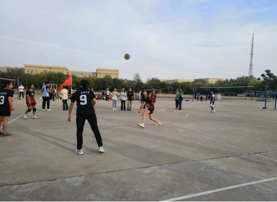 图为经管排球队在赛场驰骋的画面