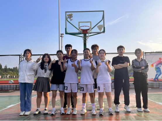 图为经管学院参与到“新生杯”篮球赛的季军队伍