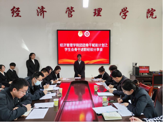 为落实习近平总书记关于青年工作的重要思想,加强学生干部队伍建设,提高学生干部的思想政治素质和工作能力。经济管理学院特举办“团团骨干赋能计划”系列培训。3月30日,学院举办第一期“学生干部述职经验分享提升会”。学院党委负责人、团委负责人、学生组织指导教师及学生干部80余人参加了此次活动。
