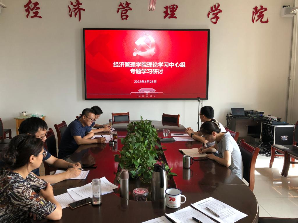 6月28日上午,经济管理学院党委理论学习中心组在明理楼党员活动室开展集体学习。会议以“凝聚青春力量,不负青春使命”为主题,学习习近平总书记在十九届中共中央政治局第三十九次集体学习时的重要讲话、习近平总书记在十九届中共中央政治局第四十次集体学习时的重要讲话和解放军报《七一建党纪念日的由来》。