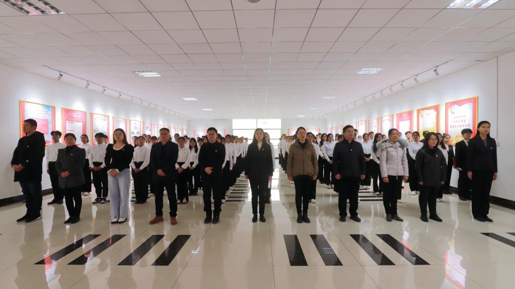 为纪念“一二·九”抗日救亡运动88周年,激发新时代大学生爱党、爱国情怀,培育和践行社会主义核心价值观。12月9日,经济管理学院在明理楼爱国主义教育基地举办“承英烈之志,行使命担当”国旗下的思政课暨纪念一二·九运动主题教育活动。经济管理学院领导班子,第二教师党支部全体党员,全体辅导员,新一批党员发展对象与2023级会计学本科1班学生共140余人参加了活动。
