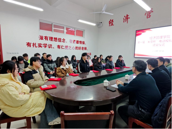 为进一步提高经济管理学院应用型人才培养水平,培养同学们实践能力和实操能力,激发同学们的创新创业活力。1月7日举办了经济管理学院首届“电话模拟营销”大赛表彰会。本大赛自12月启动以来,共吸引全院80余名学生参加。