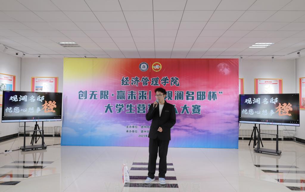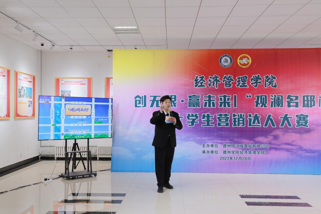 此次大学生营销达人大赛共分为推广海报设计赛道、抖音创意微视频赛道、模拟营销赛道。大赛共有11支团队和15名个人赛选手参加。经济管理学院教师和德州中汇城置业有限公司相关负责人担任大赛嘉宾和评委。