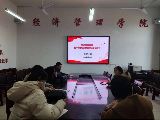 为推动学院课堂教学改革创新,提升教育教学质量,为备战教学创新大赛做准备。2024年2月26日,经济管理学院组织教师教学创新大赛经验交流会。本次活动特邀曾获得山东省教师教学创新大赛三等奖的教师为大家分享教学创新大赛经验,学院相关负责人和备战教学创新大赛团队人员参加。