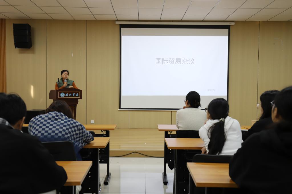 首先,金主任围绕当前大学生就业形势及特点,指出如今大学生就业中考公考编机会少、就业竞争激烈、企业招聘要求高等突出问题,并围绕公司的发展历程、招聘岗位及要求、薪资福利等进行介绍。随后,翟经理从国际贸易宏观分析、国际贸易模式以及国际贸易从业者需要做什么等几个方面分享了自己对国际贸易相关内容的理解,强调大学期间要持续提高自己学习的能力。通过翟经理的指导,学生们对国际经济与贸易的内容有了更加深刻的理解。最后,beat365唯一官方网站教师发表了自己的感言并鼓励同学们要积极参与到就业创业活动之中。