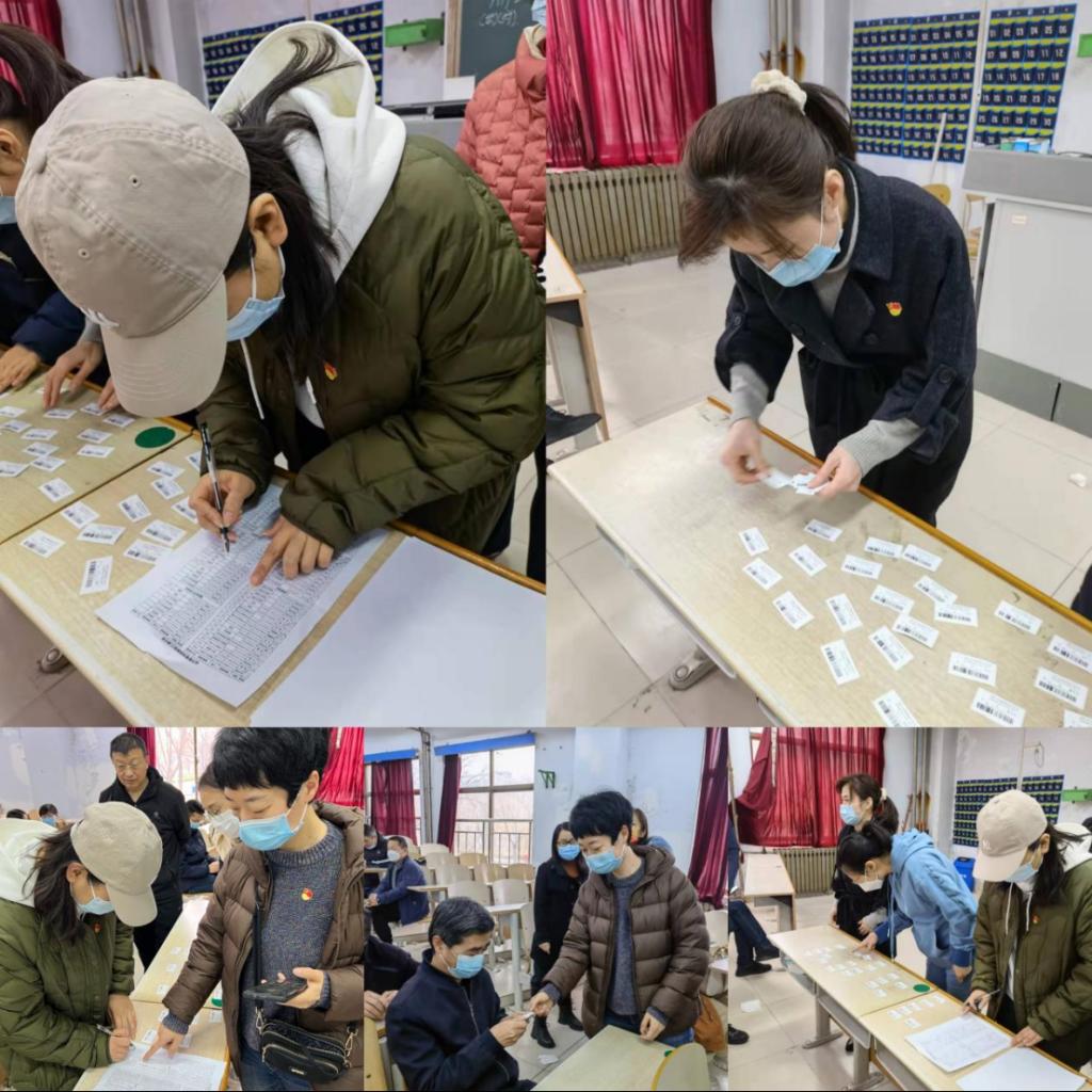 经济管理学院的教师们被安排在中午1:30集合,先到指定教室领取核酸检测条码,再自行前往体育场接受样本采集。第一教师党支部的党员教师,充分发挥党员的先锋模范作用,提前半小时赶到教室,协助完成人员统计、条码分发等工作。