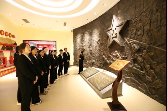 参观结束后,全体党员整齐列队于国旗之下,高举右拳,字字铿锵地重温入党誓词。誓词声回荡之际,革命战士们“敢扛千钧重担、硬扛艰难险阻、能扛使命担当”的大无畏精神与矢志不渝的坚定信仰,化作激励众人砥砺前行的精神火炬,照亮了新时代的伟大奋斗征程。