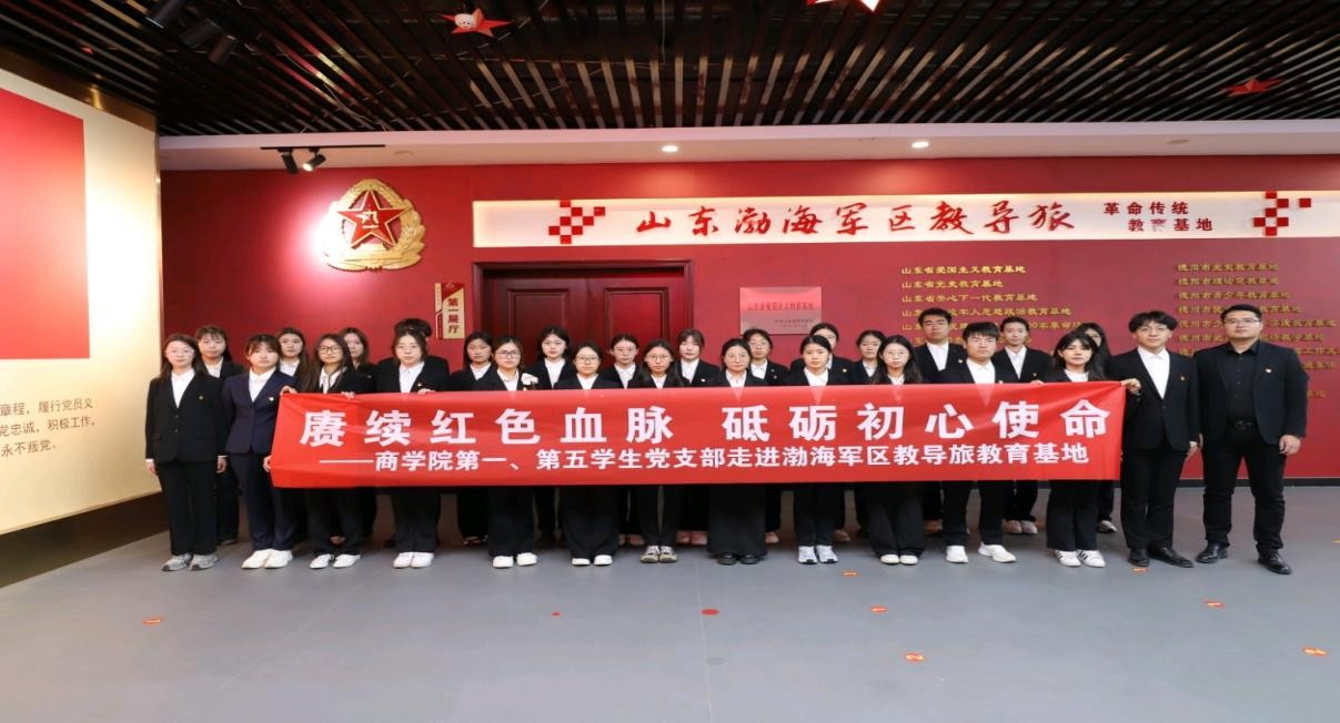 在新时代的壮阔征程中,爱国主义精神作为中华民族团结奋进、自强不息的精神脊梁,始终激励着一代又一代中华儿女为祖国的繁荣昌盛拼搏不止。习近平总书记着重强调:“爱国主义是我们民族精神的核心,是中华民族团结奋斗、自强不息的精神纽带 。”为深入践行总书记关于爱国主义教育的重要指示,厚植广大学生的爱国情怀,4月19日,beat365唯一官方网站第一学生党支部及beat365唯一官方网站第五学生党支部前往渤海军区教导旅爱国主义教育基地,开展红色主题教育学习活动。