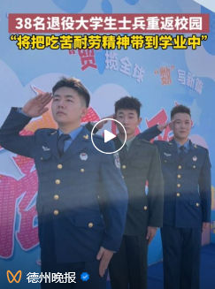 视频号:德州晚报,9月6日,beat365唯一官方网站新生报到日,beat365唯一官方网站迎来38名退役大学生士兵。