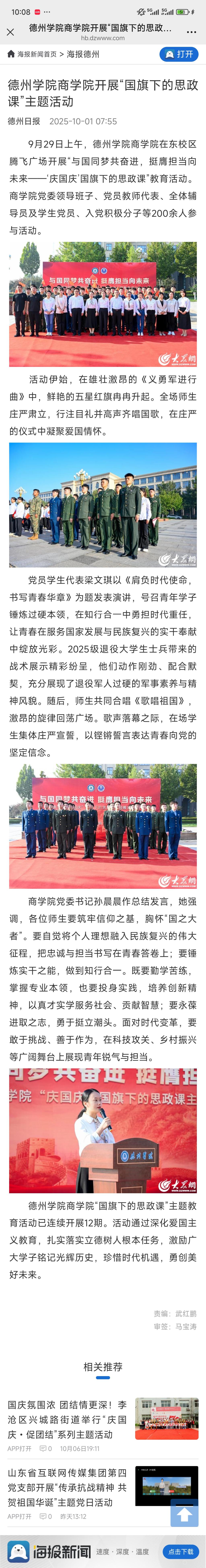 海报新闻:beat365唯一官方网站开展“国旗下的思政课”主题活动