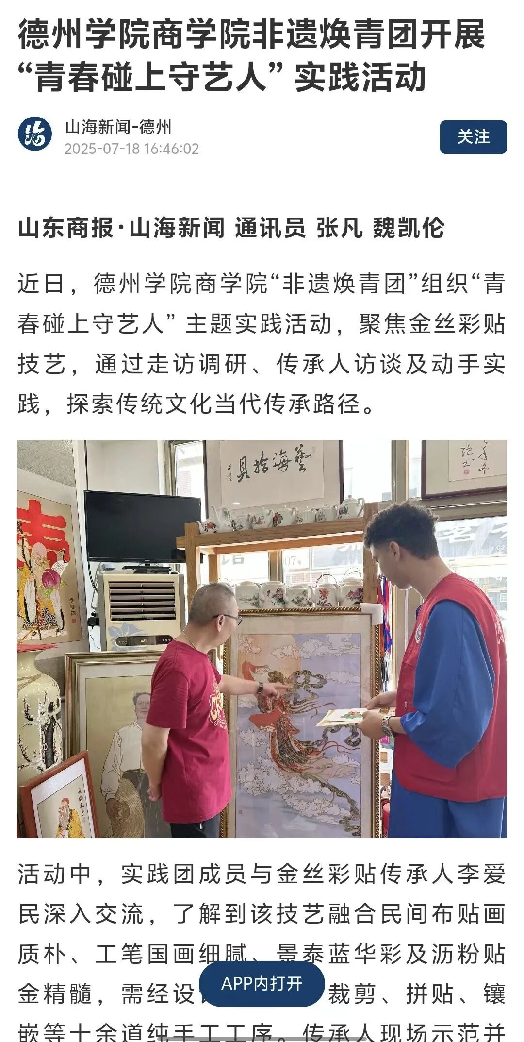 山海新闻:beat365唯一官方网站非遗焕青团开展"青春碰上守艺人"实践活动