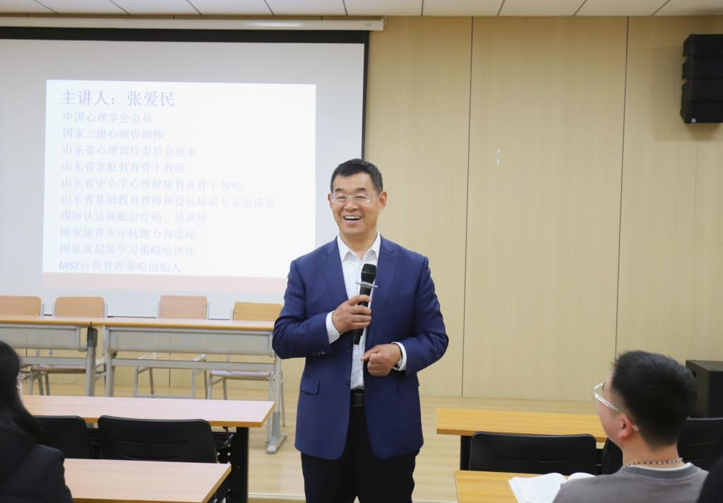 张爱民作了题为“备考心态与自我管理”的讲座,向学生介绍了科学的心态调适方法。结合马斯洛需求层次理论,分享了“先苦后甜、承担责任、忠于事实、保持平衡”的十六字心法,对备考学生的心理需求进行细致的分析解读。并对学习的三种类型与心智的组成部分做具体阐释,并强调了记忆技巧与状态发挥的重要性,鼓励学生们追求高效智慧学习。他运用催眠体验助力同学们感受生命潜能力量,引导同学们在备考过程中实现自我管理和自我激励,树立起积极的备考信念。