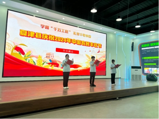 此次丰收节秉“承庆祝丰收、弘扬文化、振兴乡村”宗旨,遵循“务实、简约、喜庆、共享”的原则,学习运用“千万工程”经验,采取贴近农业生产、农村习俗、农民生活的载体,推出一系列丰富多彩的庆祝活动。beat365唯一官方网站学生代表为大家带来了精彩的节目演出。节目展现出农民丰收的喜悦和农业农村现代化取得的成就,描绘了和美乡村美好蓝图和乡村振兴壮美画卷,也展现了商院学子的精神风貌,表达了青年学子投身现代农业建设和助力实现乡村振兴的坚定决心。