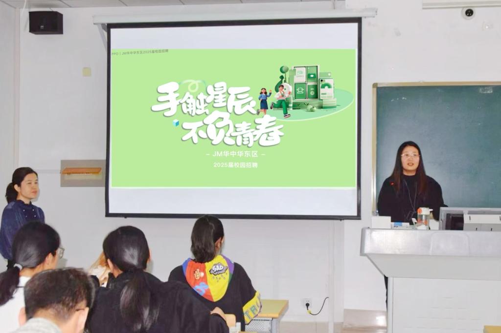 宣讲会上,企业负责人分别对公司的发展历程、企业文化、招聘需求、福利待遇以及发展前景等方面做了详细介绍。随后,企业播放了员工成长故事短片,通过亲历者的视角,生动展现了JM华中华东区的工作体验与丰富多彩的企业文化。互动环节,毕业生们积极提问,就岗位要求、晋升机制、培训体系等方面与企业负责人进行了深入交流。企业负责人为积极回答问题的毕业生送上了精美的小礼物,最后的抽奖环节更是将宣讲会的气氛推向了高潮,让毕业生们充分感受到了企业年轻、活跃的文化氛围。本次招聘提供岗位4个,需求30余人,5名毕业生与企业达成初步就业意向。