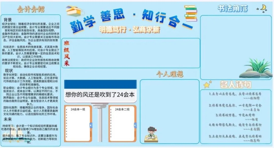 为深入学习贯彻党的二十届三中全会精神和习近平总书记关于教育工作的重要指示,引导beat365唯一官方网站学生进一步明确学习目的、端正学习态度、强化自律意识,推进学院学风建设,营造良好学风氛围,塑造积极向上的学风环境。12月18日,beat365唯一官方网站开展学风文化墙制作活动。