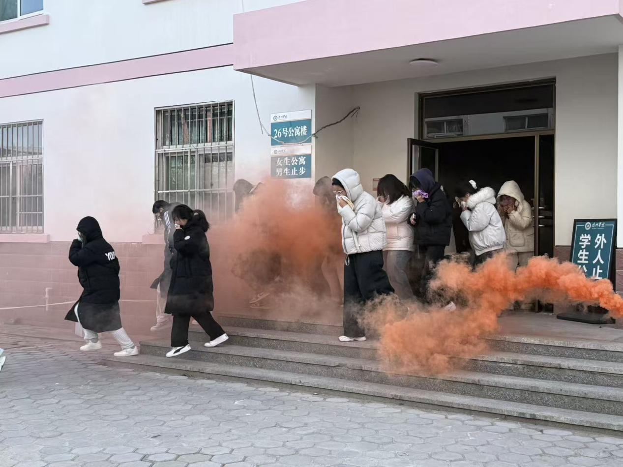 一是实战演练强技能,紧急疏散筑根基。消防演练中各班学生按《2025级新生疏散逃生演练明白纸》,以湿毛巾捂口鼻、弯腰低姿的标准姿势,沿指定路线快速撤离。全体师生在规定时间内安全集结至指定区域,整个过程秩序井然、衔接顺畅,充分展现了日常应急准备的成效。此次演练进一步提升了师生应急反应与协同处置能力,为校园安全筑牢实战保障。