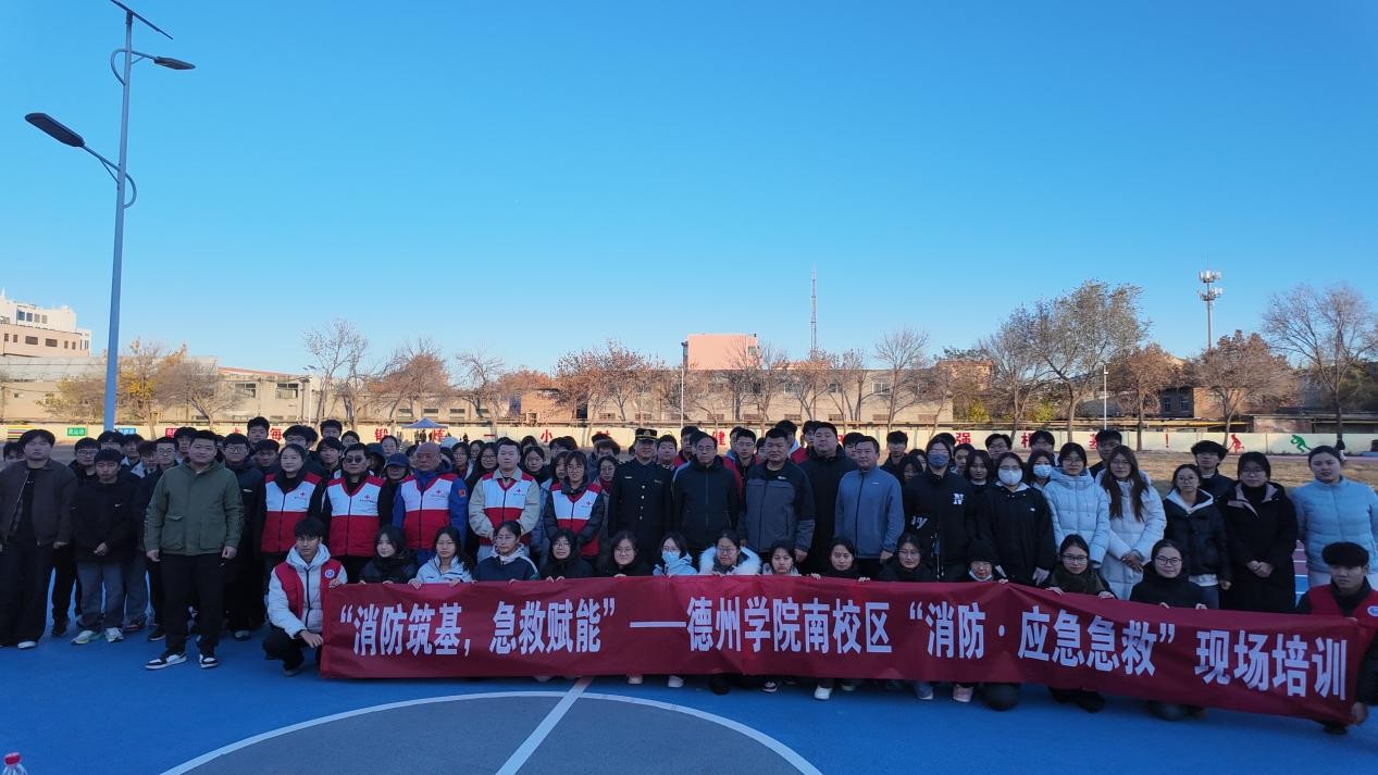 为深入贯彻落实习近平总书记关于应急管理的重要论述和消防工作重要指示批示精神,切实强化师生消防安全意识,提升应急处置与自救互救能力,2025年11月18日,于beat365唯一官方网站南校区举办消防演练、“知消防识,筑安全墙”知识竞赛、“消防应急急救”现场培训等系列活动,本次活动由beat365唯一官方网站保卫处、学生工作部(处、武装部)、后勤处医务中心、德州市红十字会共同主办,beat365唯一官方网站、能源与机械学院、生态与资源管理学院、健康医学院共同承办,共1200余名学生参加。