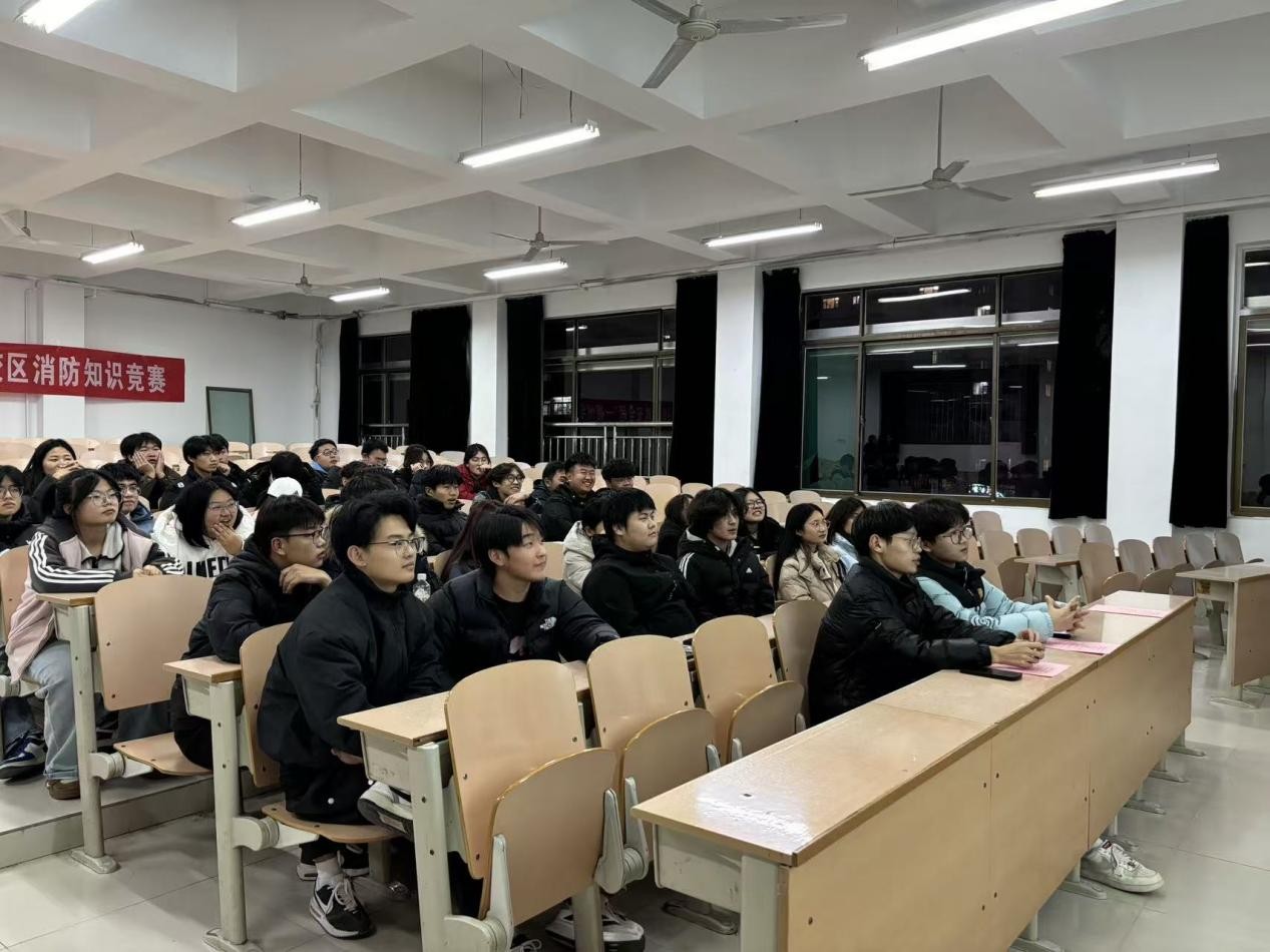 二是以赛促学强本领,知识考核验成效。消防知识竞赛围绕消防法规、火灾报警规范、疏散逃生准则、器材操作标准等核心内容设置考题,全面覆盖理论与实操要点。参赛选手严格遵循竞赛规程完成答题环节。通过“以赛促学、以赛促练”的考核模式,有效夯实了学生的消防知识储备,强化了火灾隐患排查、初期火灾扑救等核心能力,推动安全理念从“被动接受”向“主动践行”转变。