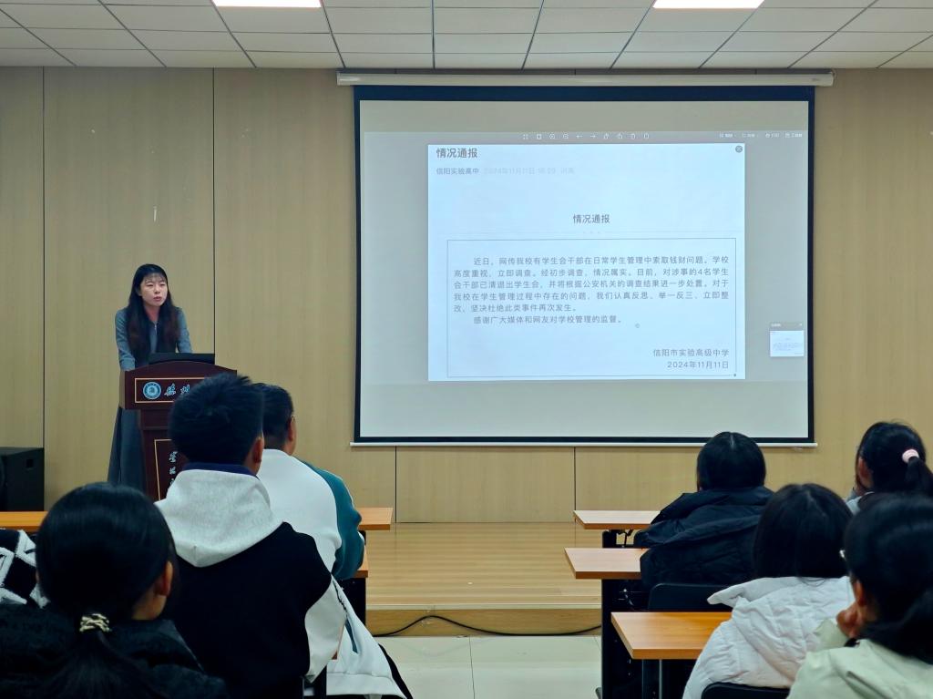 随后,团委书记王向蕊主讲“青廉课堂”团学骨干作风建设教育培训。她提出,学生干部应常修常炼清廉理念这门终身功课,筑牢信仰之基,补足精神之钙,走好廉洁每一步。同时,她还希望学生骨干能够深刻体会到党强调廉政教育的重要性和紧迫性,深化对廉洁意识的理解,强化理想信念根基,防止思想滑坡导致的腐败行为的发生。